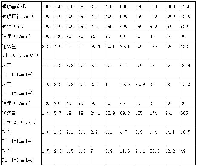不銹鋼螺旋輸送機是螺旋輸送機的一種,下面是其技術(shù)參數(shù):
